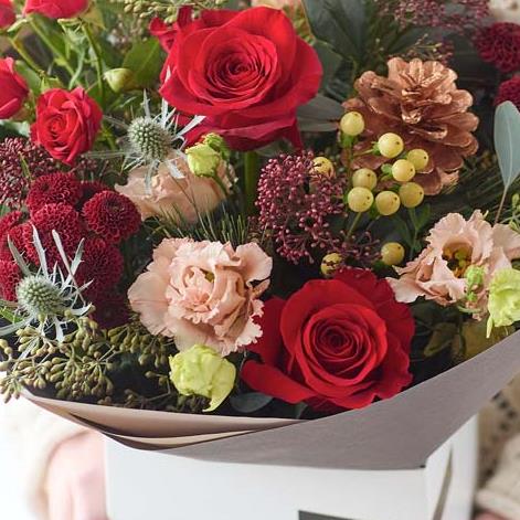 A beautiful bouquet of fresh festive flowers carefully chosen box and packaging may vary