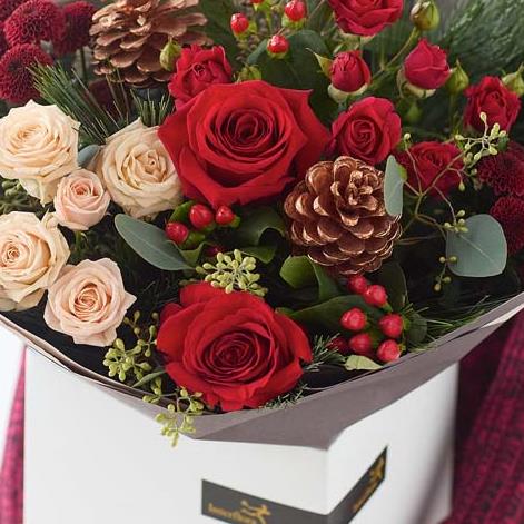 A beautiful bouquet of fresh festive flowers carefully florist choice flowers box and packaging may vary.